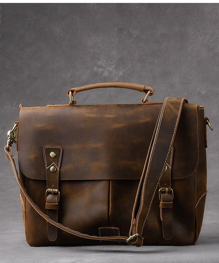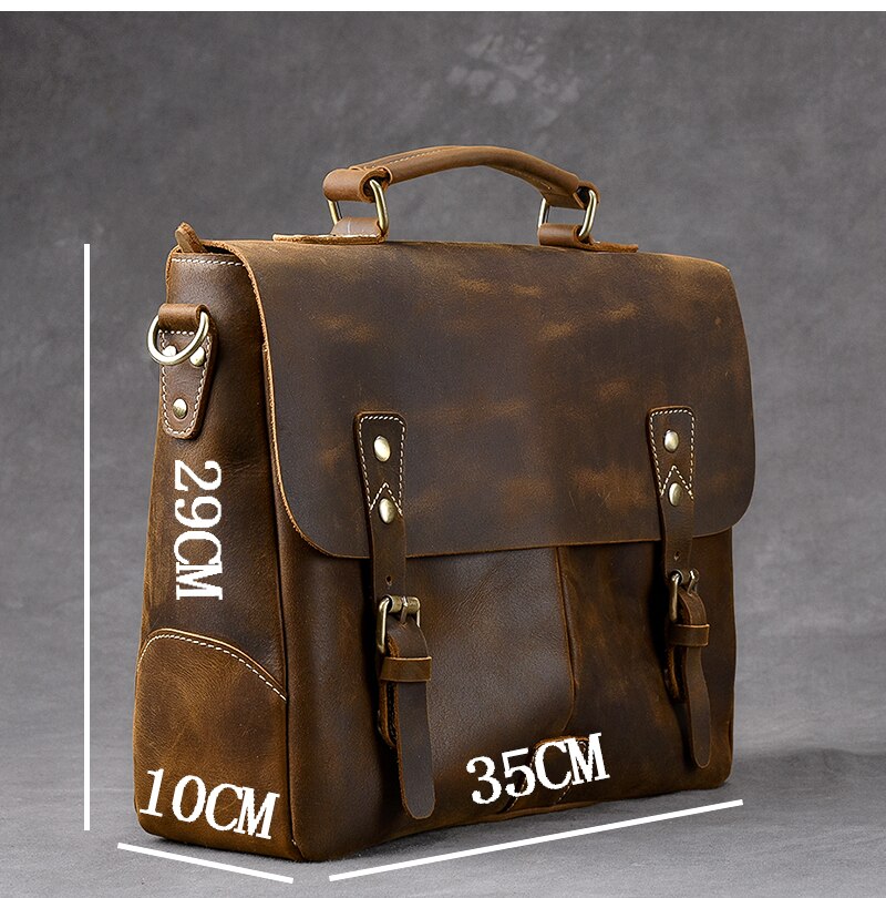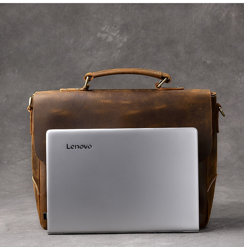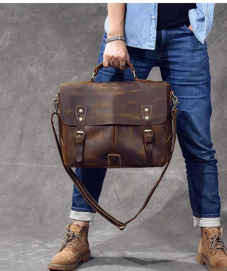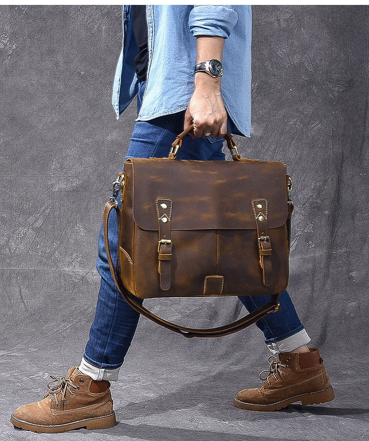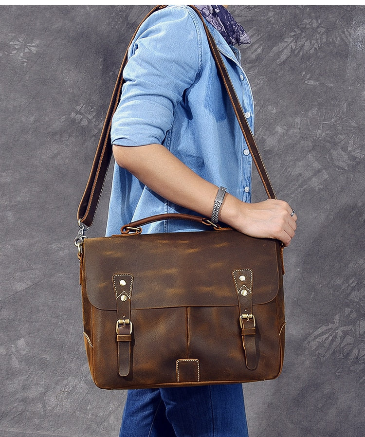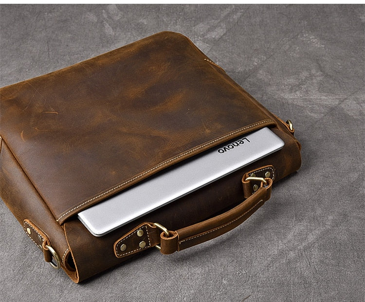 Vintage Classic Men's Soft Horse Leather Laptop Shoulder Handbag