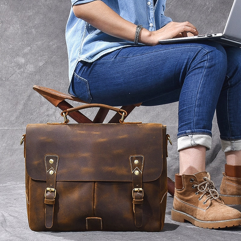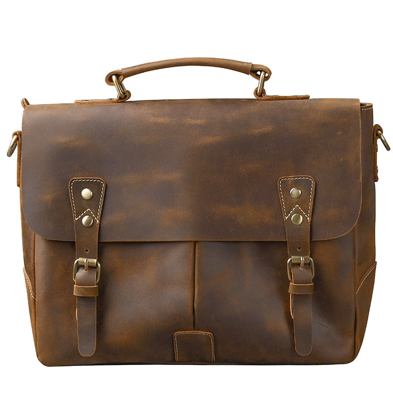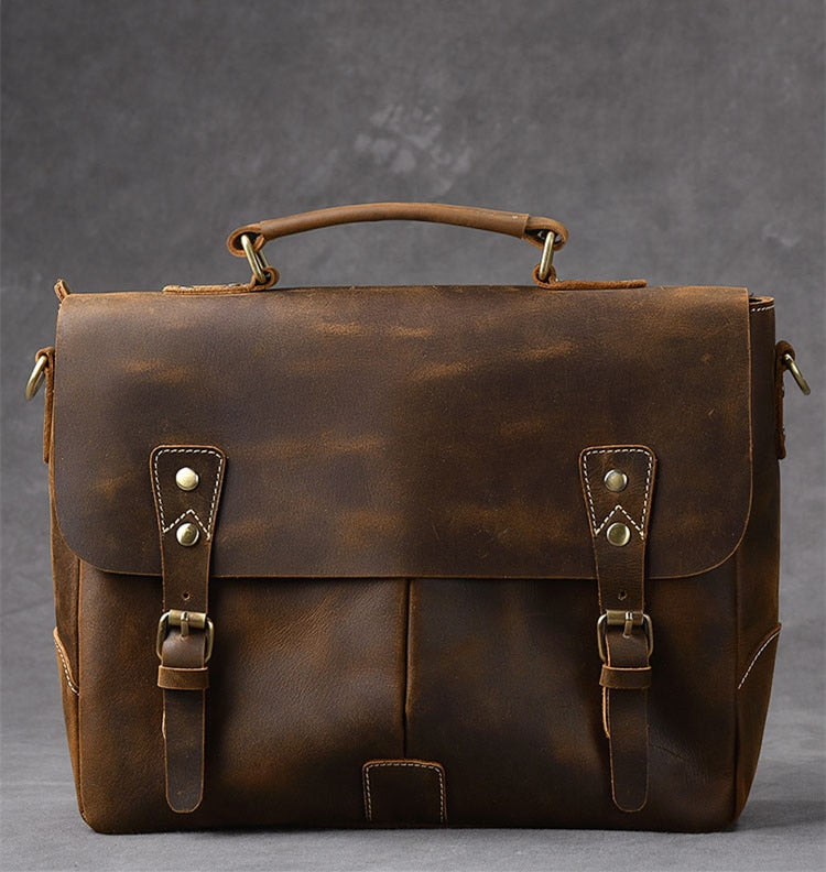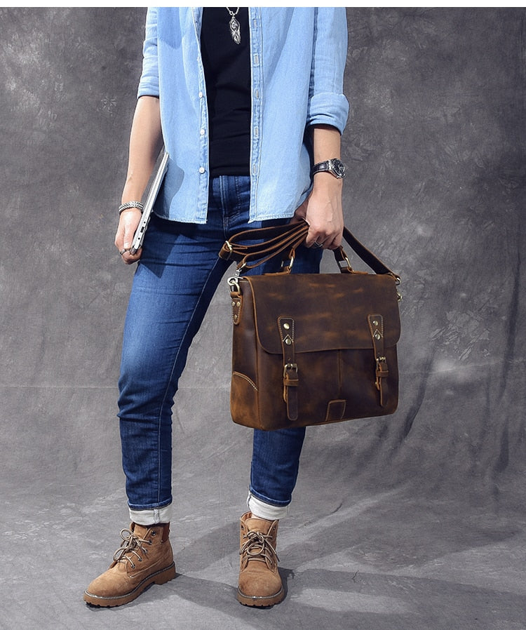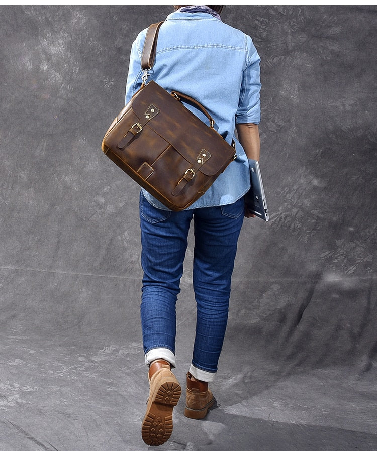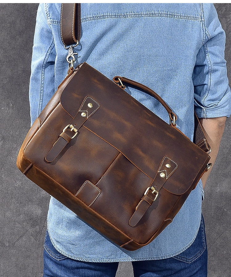 Vintage Classic Men's Soft Horse Leather Laptop Shoulder Handbag