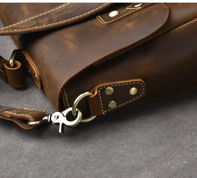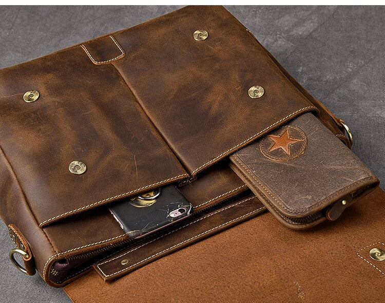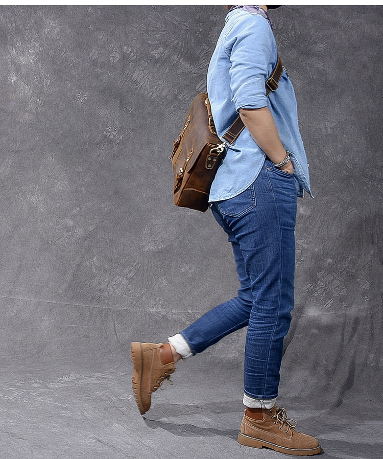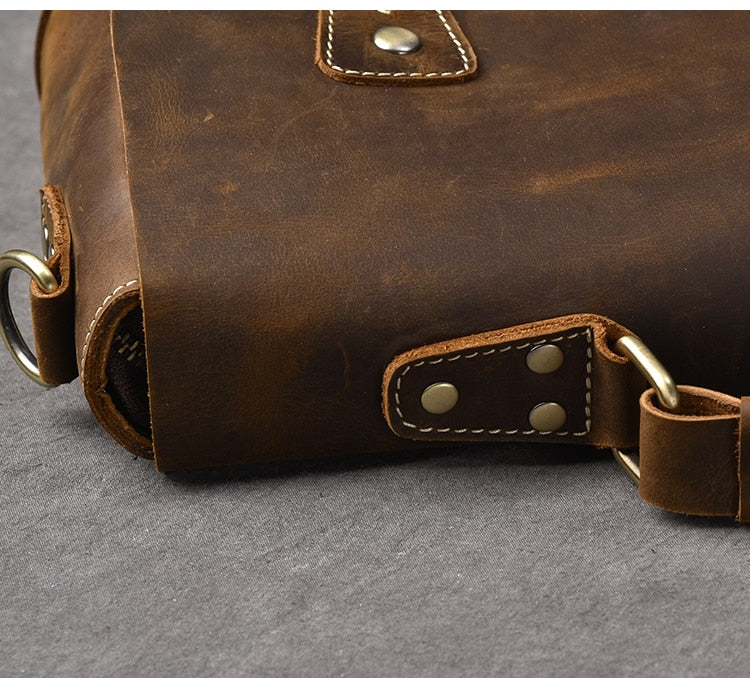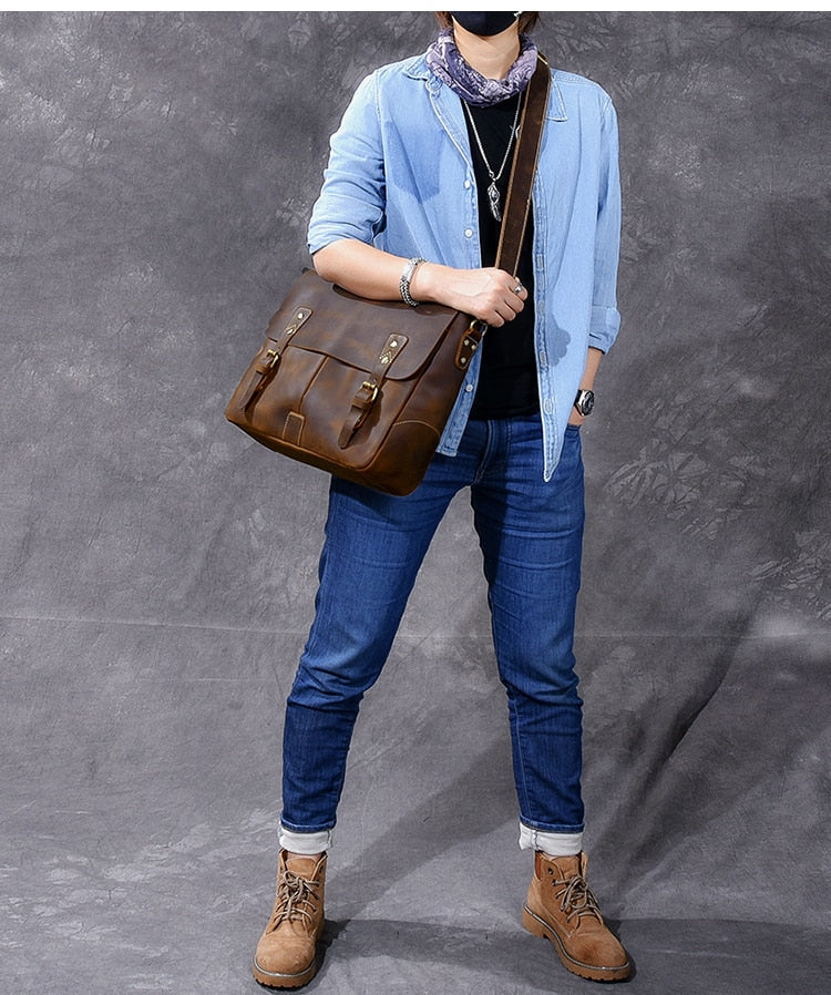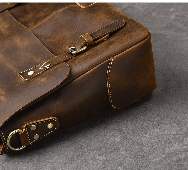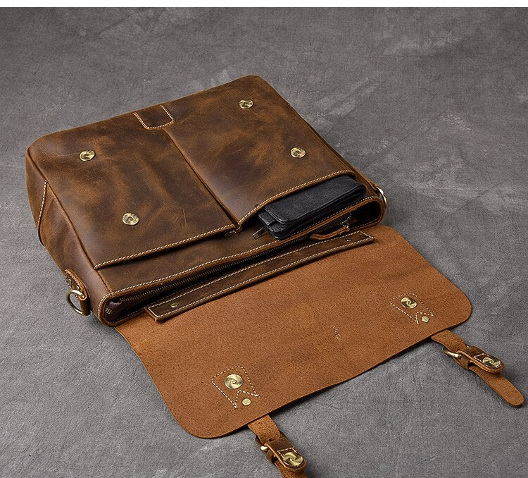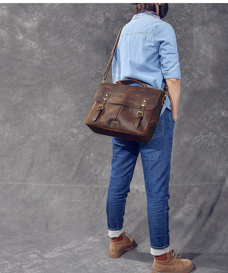 Vintage Classic Men's Soft Horse Leather Laptop Shoulder Handbag